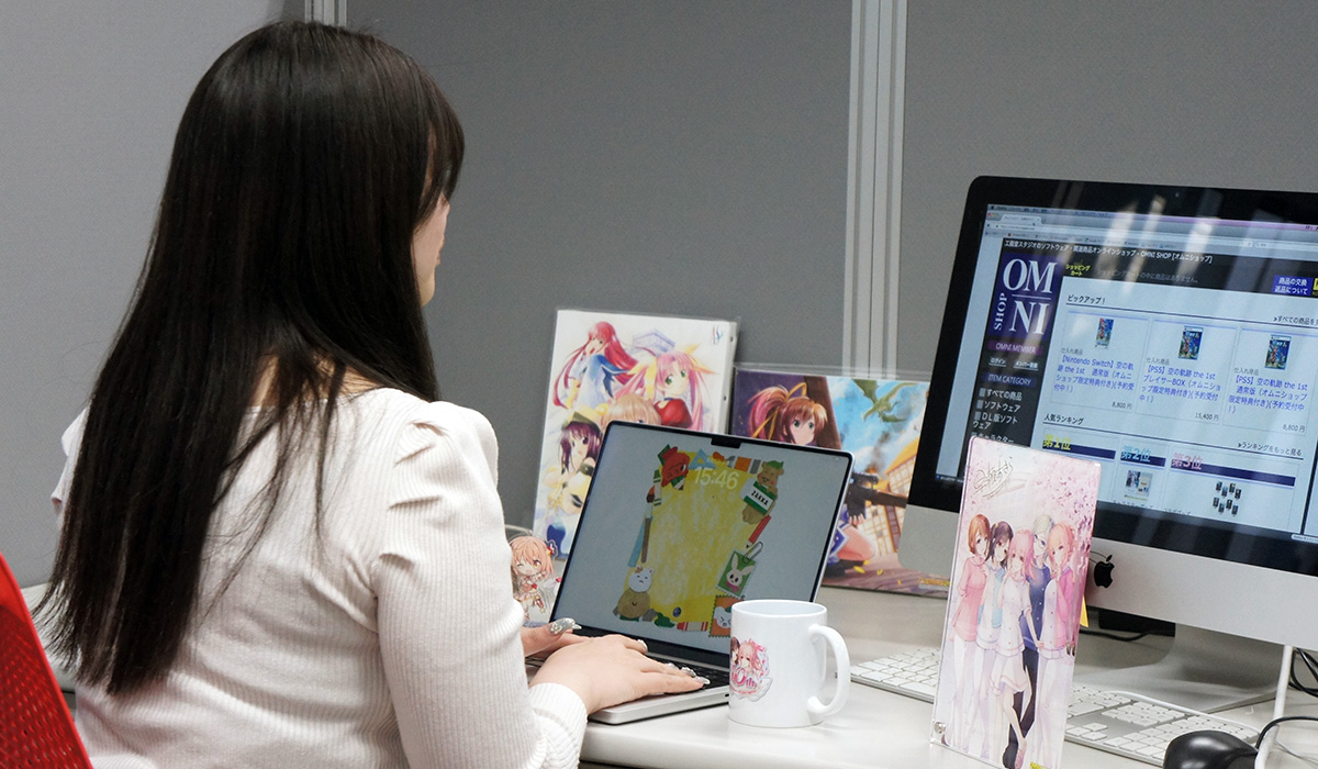 また、自社ECサイトであるオムニショップの運営やユーザーサポートの対応、イベントに出展してのグッズの販売も行っているため、工画堂スタジオのコンテンツを愛してくださるユーザーさんの窓口となることも多いです。